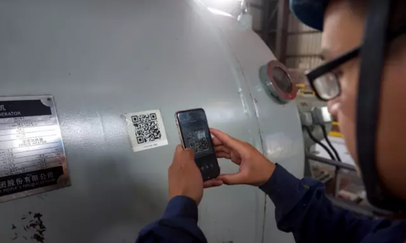余熱發電機組巡視人員通過掃碼來登記設備運行狀況。