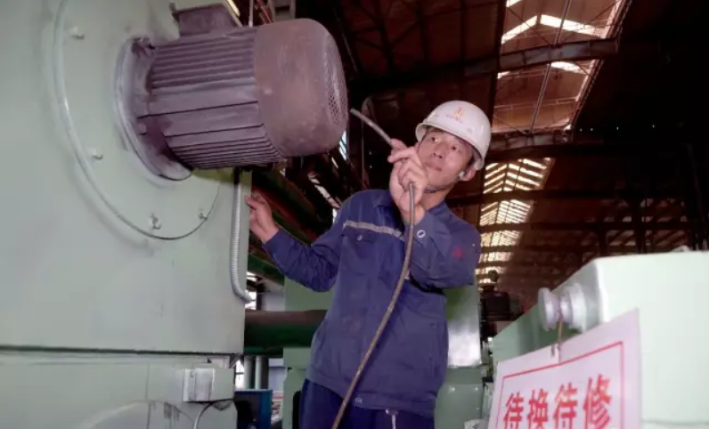 高線車間工人在檢修清潔電動機。
